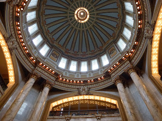 We always look on the Internet prior to going to any state capitol to see what time the tours start or if any are even given. The information on the capitol in Mississippi stated that the first tour was at 9:30, so we drove into Jackson and saw that the House of Representatives and the Senate were in session. We walked in the entryway and yikes the whole place was full of suits and dressed up ladies.